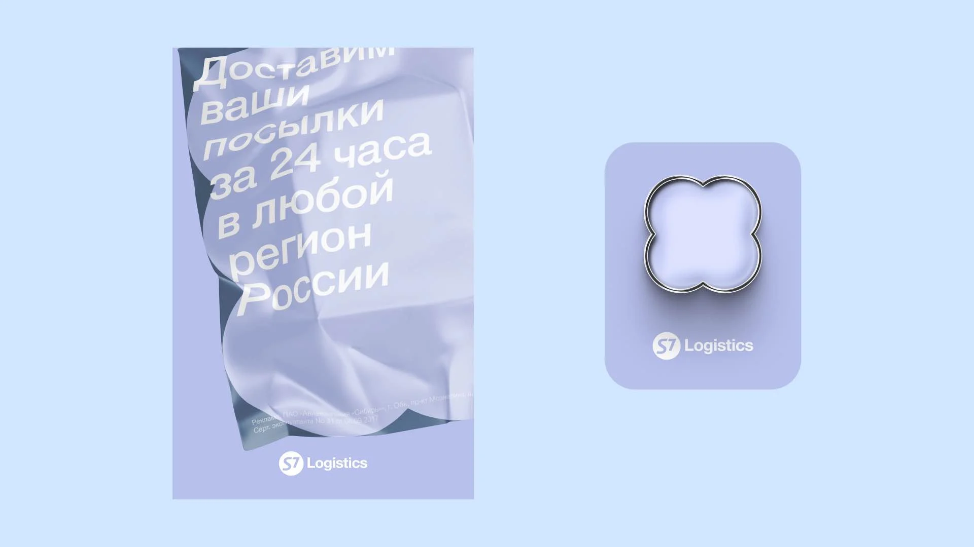 Develop a sub-brand for S7’s B2B delivery service that communicates the ability to ship packages by air using the airline's technology, ensuring delivery within 24 hours. I based the visual language on a metaphor of clouds of different sizes, symbolizing packages of any dimension. These “clouds” fly through real clouds, reinforcing the concept of flight and seamless delivery. By maintaining S7’s recognizable color scheme, I created a bold and distinctive design system that stands out among other shipments, ensuring strong brand visibility.